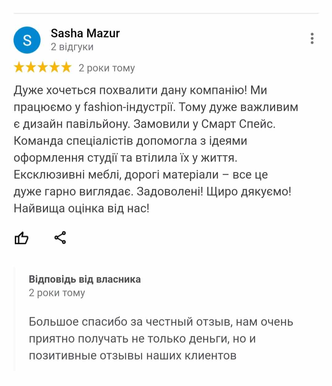 Саме тому ми зібрали для Вас найкращих фахівців у галузі будівництва та доповнили їхню роботу тісною співпрацею з командою дизайнерів. Так ми створюємо унікальні інтер'єри, продумані до кожної дрібниці. Компанія «Смарт Спейс» - впроваджує ідею персональної відповідальності всіх етапах виробництва, адже основа нашої філософії - це намір донести до споживача першокласний продукт. Взявши на себе відповідальність – ми не відгороджуємось від наслідків ухвалених рішень. Ми дуже любимо те, що створюємо, і не йдемо на компроміси із власними уявленнями про якість.